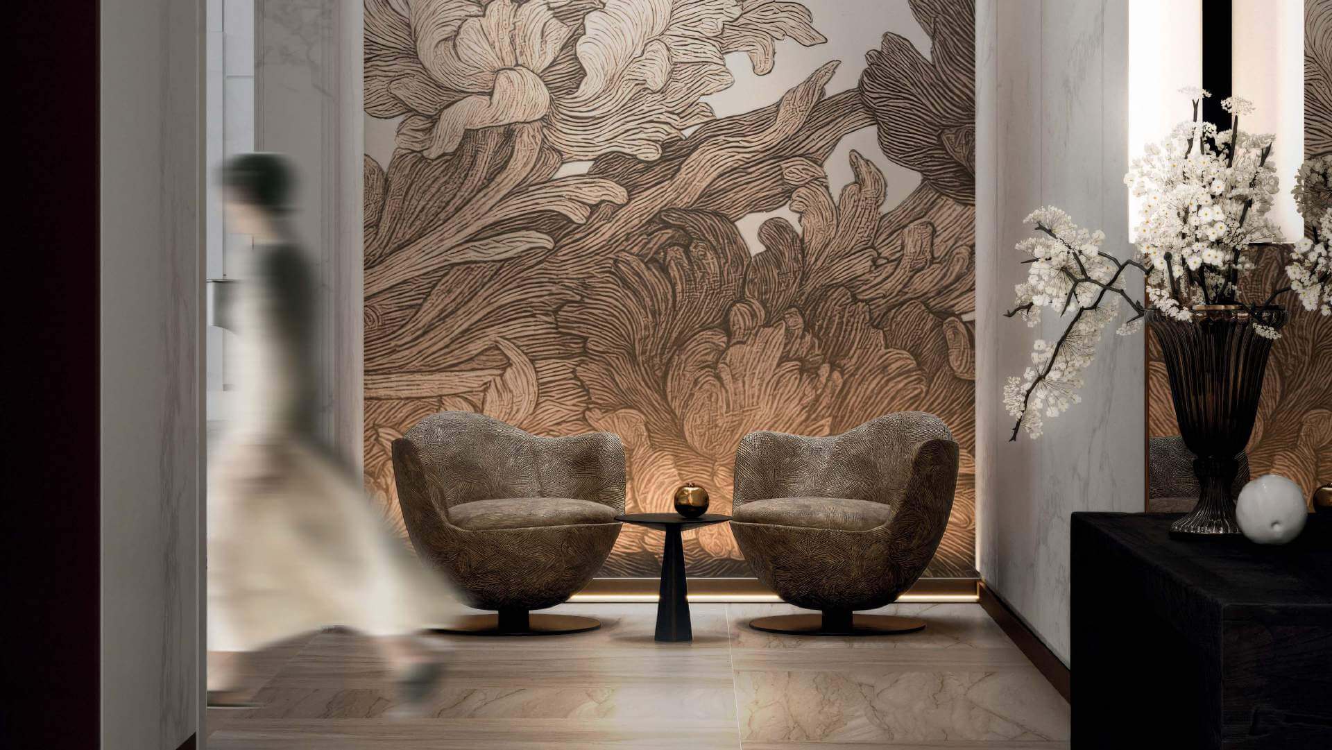 Дизайн лобби вдохновлён русской культурой: декоративные панно, арт-объекты и мягкая игра света создают узнаваемые культурные акценты. Интерьер сочетает современные технологии и традиционные мотивы, превращая пространство ожидания в место притяжения. Каждая деталь — от фактуры стен до линии освещения — направлена на создание ощущения уюта и респектабельности.
